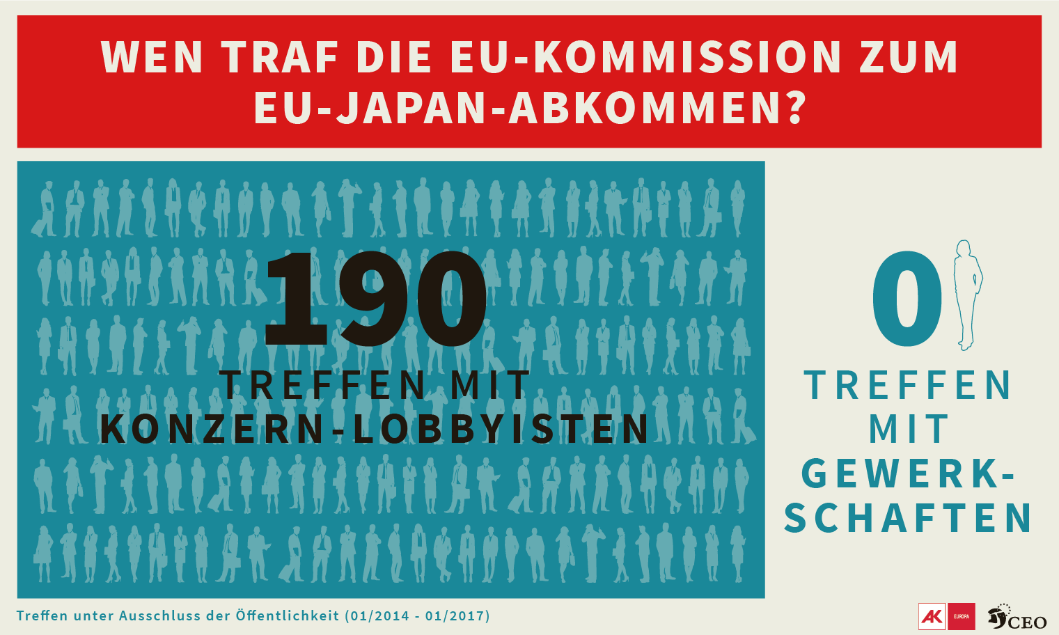 Die EU bezeichnet das EU-Japan-Abkommen als eine Partnerschaft. Ein Blick auf die von der Kommission in den Verhandlungen konsultierten Gesprächspartner*innen zeigt, dass es sich dabei in Wahrheit allein um eine Partnerschaft zwischen EU-Verhandler*innen und multinationalen Konzernen handelt.