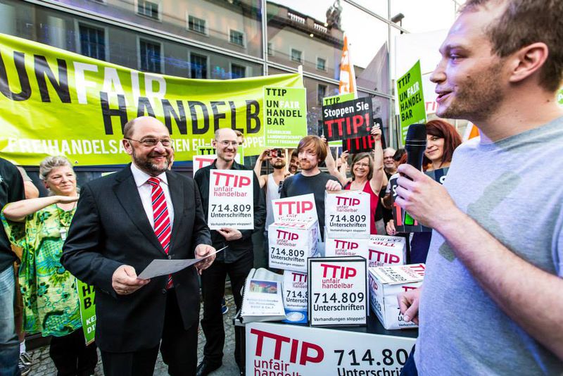 In Germany, the controversial EU-US trade and investment agreement (TTIP) became one of the major themes in debates in the run-up to the European Parliament elections. Many in Germany, rightfully, consider TTIP to be a major threat to high-level health and environment standards and a direct result of far-reaching corporate lobbying influence over EU trade policy-making. Throughout the election campaign period, there were lots of initiatives to get MEPs to show where they stand on TTIP. A few days before the elections, the leading candidates were presented with signatures of more than 715,000 German citizens who demanded a halt to the TTIP negotiations.