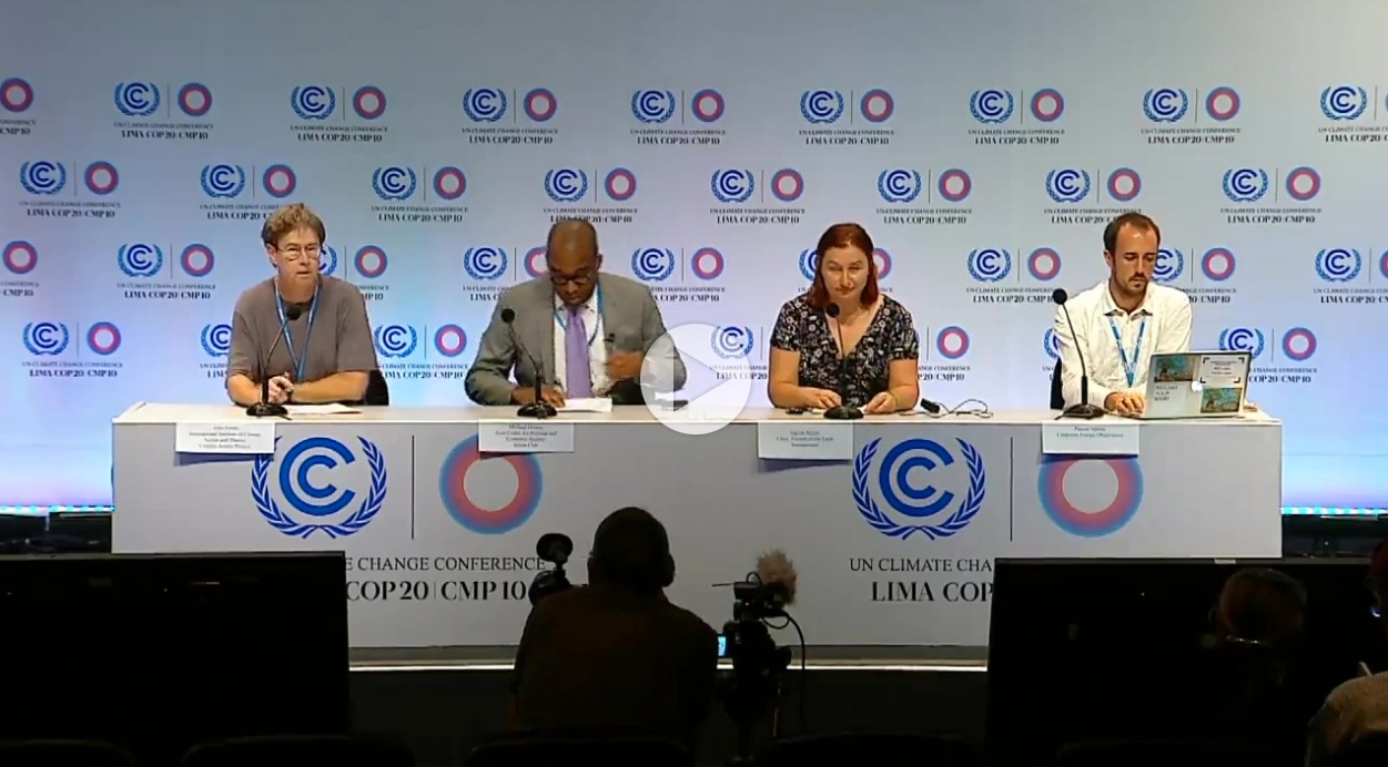 As the UN climate talks – COP20 – wrap up in Lima, CEO took part in a press conference to reflect on what two weeks of negotiations mean for climate justice and the road to Paris. Organised by the Institute of Climate Action and Theory, CEO was joined by with Michael Dorsey (board member of Sierra Club) and Jagoda Munic (Chair of Friends of the Earth International).