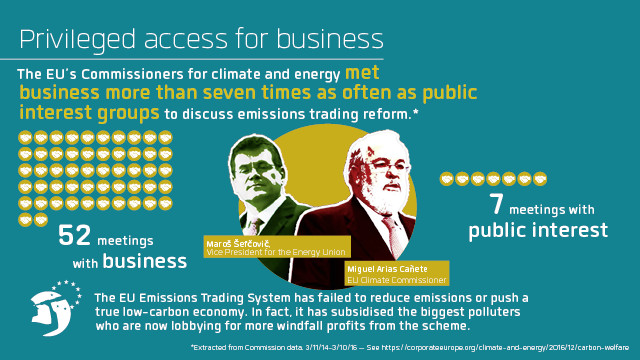 The first big win for polluters was a proposal to reduce the annual target for emissions cuts by industries covered by emissions trading (called the “linear reduction factor”) from 2.4 per cent to 2.2 per cent. Although the latter figure was originally proposed by the European Commission, it has been criticized for falling short of the levels that would be needed to achieve a minimum target of 80 per cent greenhouse gas emissions reductions (compared to 1990 levels) put forward in the 2050 Low-Carbon Roadmap. This leaves the EU a very long way short of meeting its fair share of global climate action.