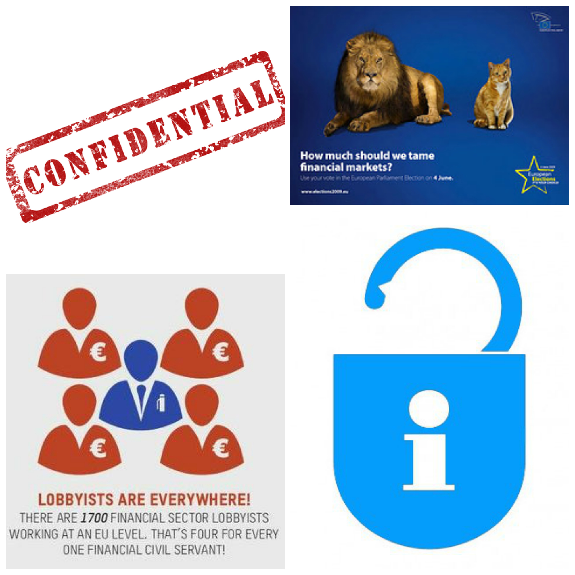 What major issues were debated in the EU institutions at the time? Major issues include wrangles over a Financial Transaction Tax (on cooling high frequency trading and taxing the financial sector), on banking separation (to eg prevent banks from speculating with regular customers money), on the banking union (on supervision of big banks and the costs of winding them down or bailing them out), to name but a few. These issues have clearly been the topic of many meetings between the financial lobby and the Commission. Yet only a little bit of information seeps out, thanks to a rather cynical approach at DG MARKT to freedom of information.