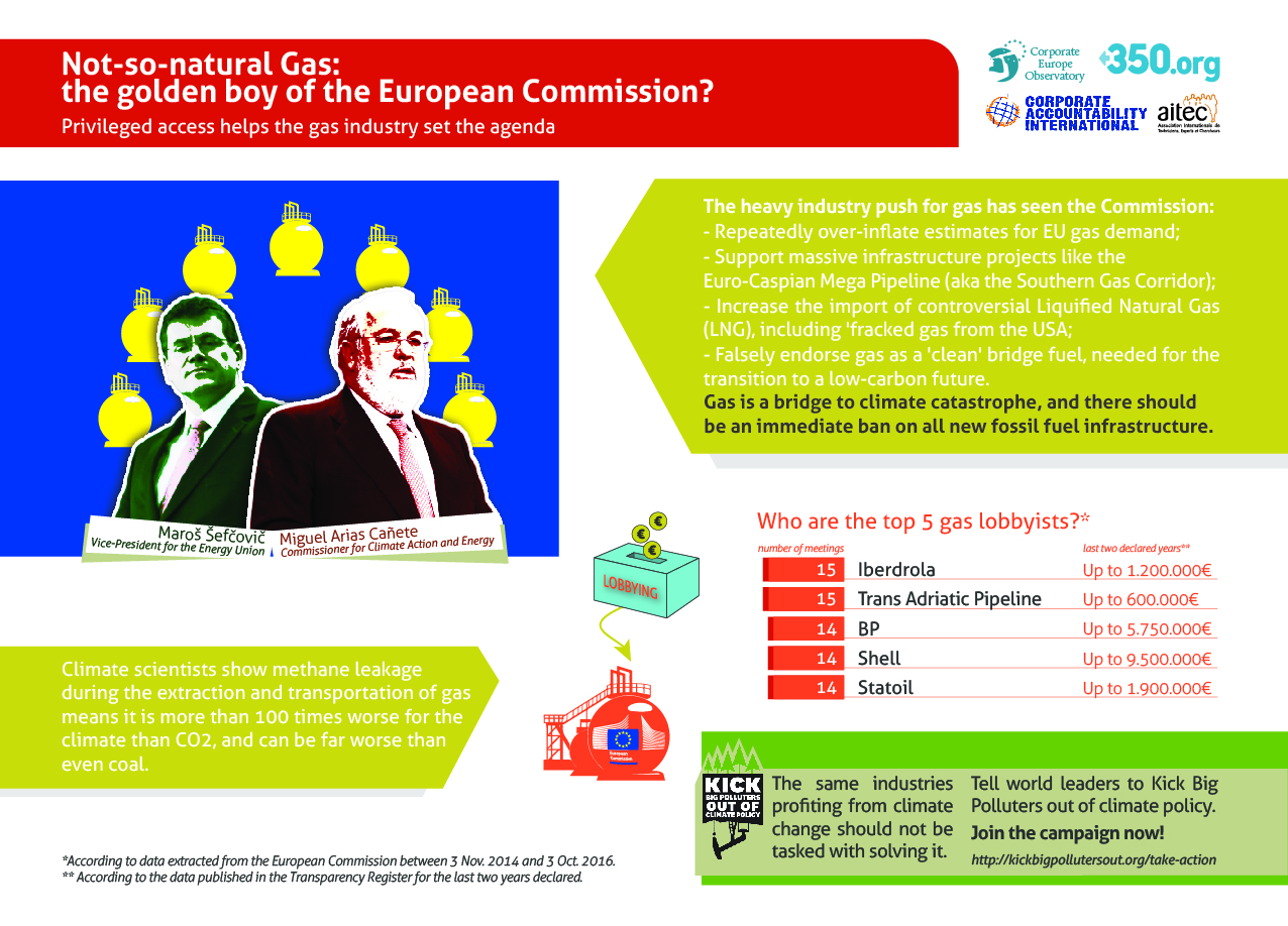 Each of the top ten industry lobbyists who met Cañete and Šefčovič is linked to the gas industry, so it’s no surprise to see the Commission pushing ahead with yet more gas infrastructure.