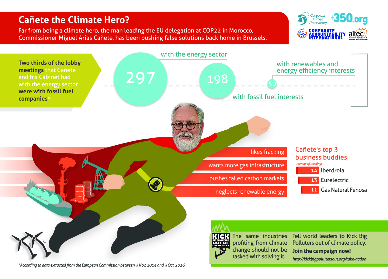 New analysis of lobby meetings shows that EU Climate Commissioner Miguel Arias Cañete and his colleague Maroš Šefčovič, Vice President for the Energy Union, have overwhelmingly met with corporate lobbyists rather than public interest groups. The analysis, which coincides with the officials’ two-year anniversary in office and the ongoing UN climate talks in Marrakech (COP 22), reveals their particularly close relationship to lobbyists representing the fossil fuel industry.