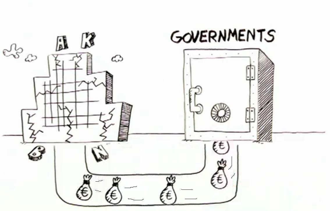 | Bailout | the saving of banks on the brink of bankruptcy by national governments – because they are supposedly 'too big to fail'. This leads to an increase in public debt |