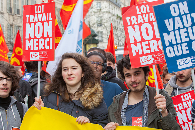 Strikes and actions across France against reforms of the country’s labour protections, known as the El Khomri Law, demonstrate the immense unpopularity of the measures proposed by the French Government. Chiefly among them, to give preference to local agreements on wages and working conditions, when the conditions in those agreements are less favourable than the national norm inscribed in national law. This is an open attempt to undermine collective bargaining and roll back the influence of trade unions.
