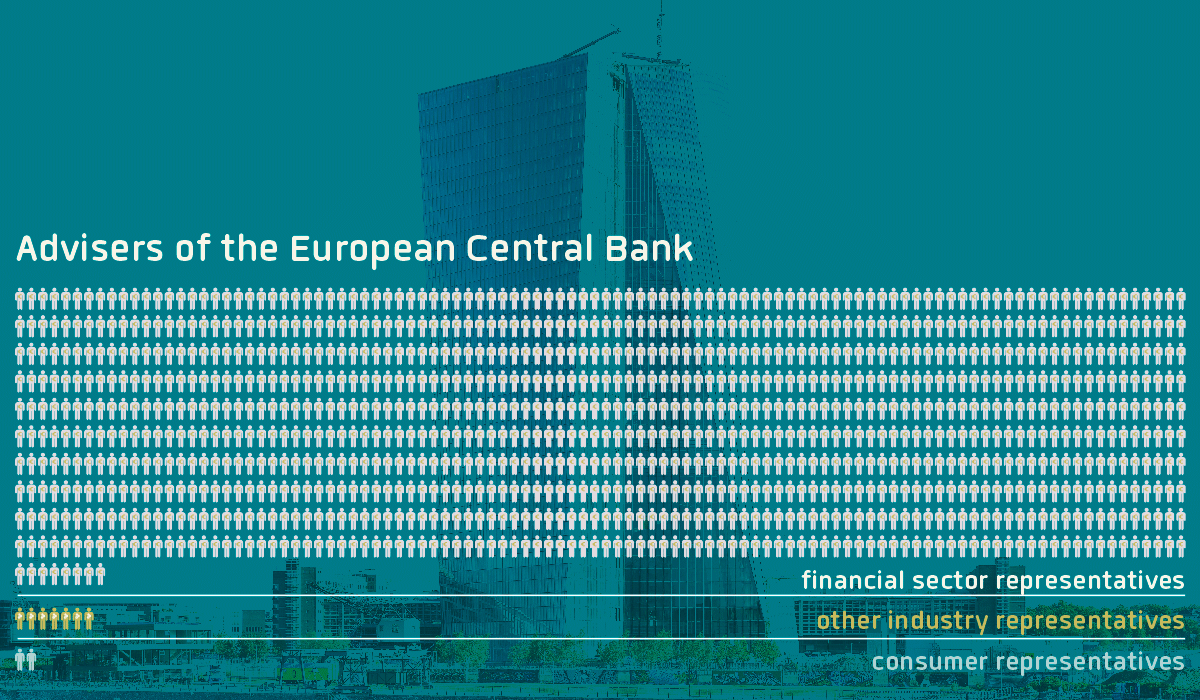 ECB advisory groups are used as lobby platforms by the financial industry, as our new report shows. 'Open door for forces of finance at the ECB' reveals that the advisory groups counselling the European Central Bank are dominated by representatives of some of the most influential global financial corporations.