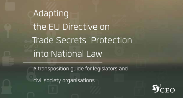 In June 2016, the EU’s Trade Secrets Protection Directive was enacted to repress espionage, theft and unauthorised publication of companies' confidential business information, their “trade secrets”. But the way it defines these is so broad that it will also, in all likelihood, make public scrutiny of corporate activities more difficult in Europe. This “transposition briefing” (download) to the Directive aims at providing background information and analysis to this legislation in order to help national legislators and civil society when it reaches national parliaments for discussion and adoption.
