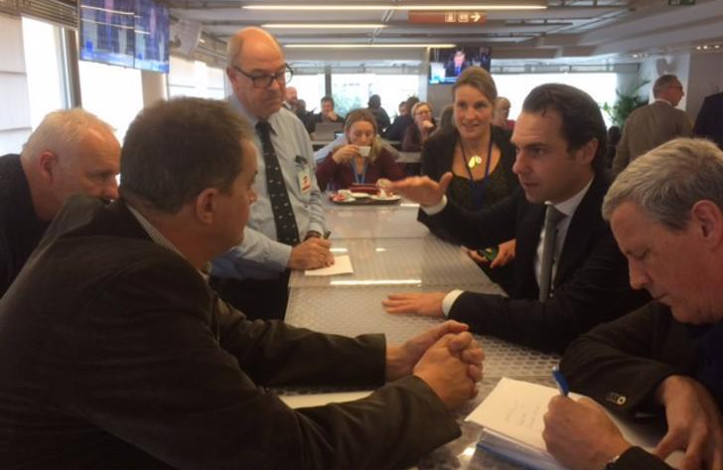 The photo appears to show Minister Martijn van Dam, Dutch government official Marieke Mossink and representatives from VisNed including Maarten Drijver, Geert Meun, and VisNed’s Director Pim Visser, who is also President of another fisheries lobby group, the European Association of Fish Producers Organisations (EAPO), all meeting together inside the Council building.