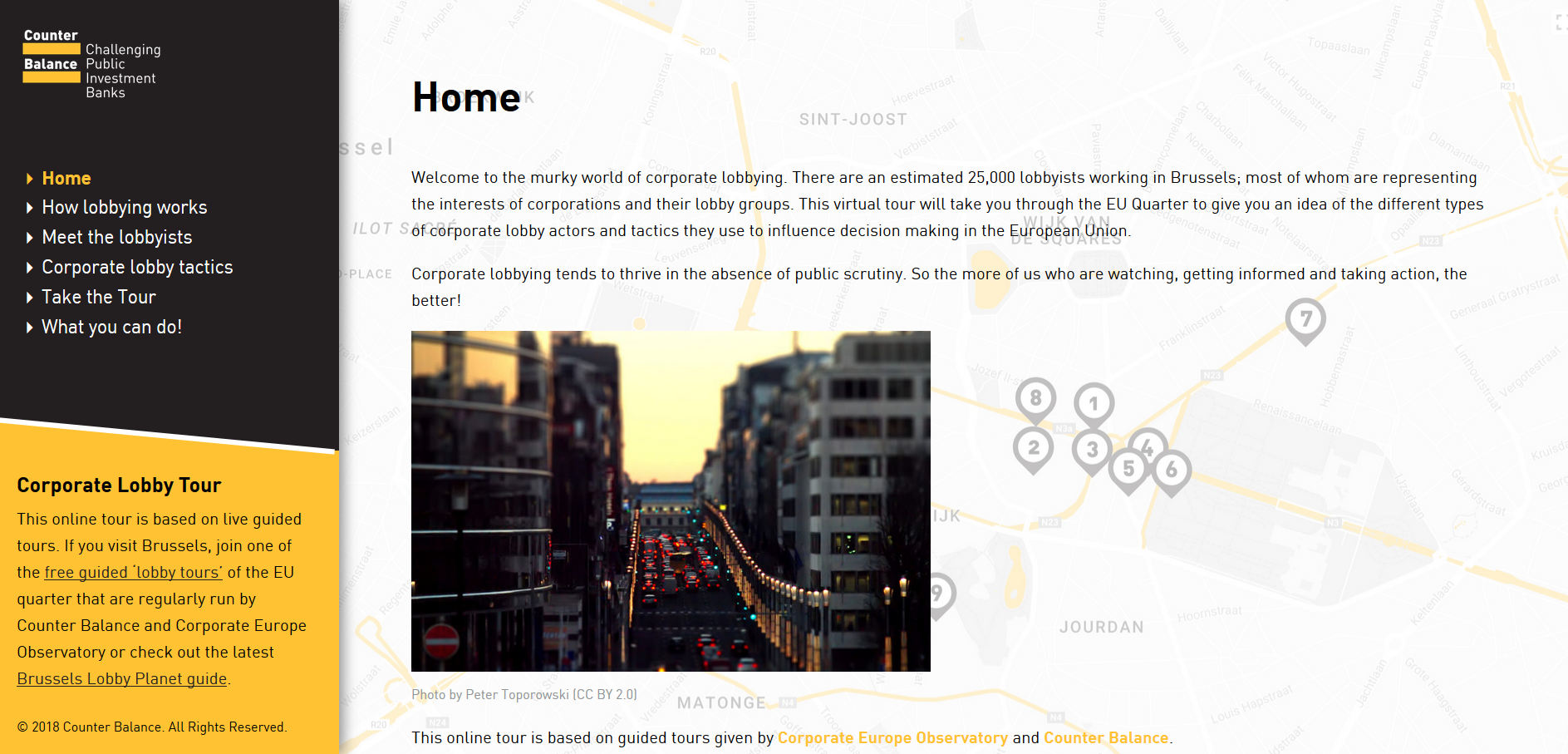 Who influences decision-making in the European Union? And how? Welcome to the complex and often shady realm of corporate lobbying, which you can now tour from the comfort of your sofa. Or while queuing for frites. Or even on the go in Brussels, following the virtual route on foot!