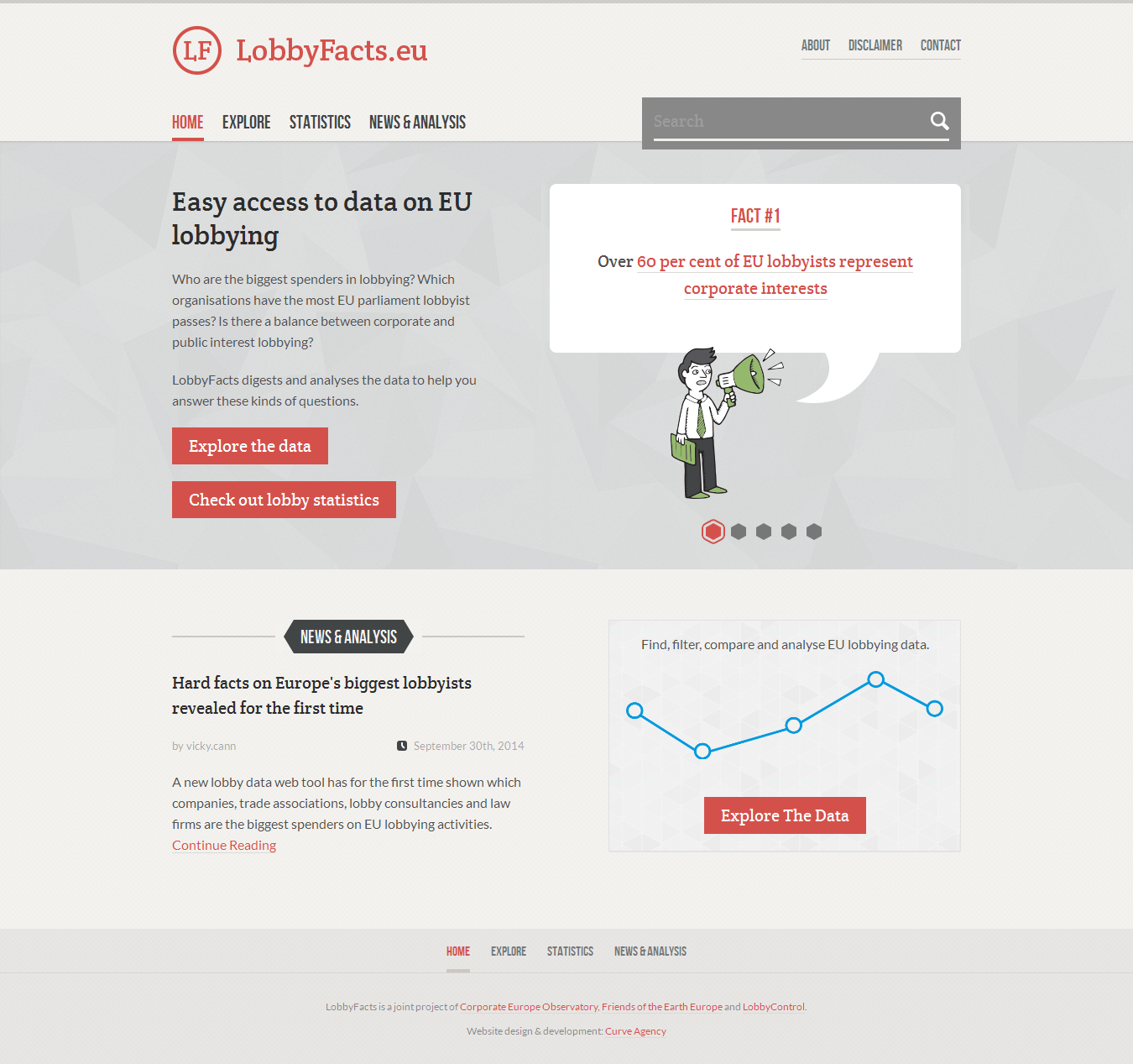 LobbyFacts.eu is a new online tool based on the EU lobby register which allows the data to be sorted, compared, ranked and analysed in ways not possible in the current register. LobbyFacts allows journalists, activists, academics and others to see the top spenders on lobbying and who has the most parliamentary passes. The LobbyFacts search engine is also significantly faster than the official register website.