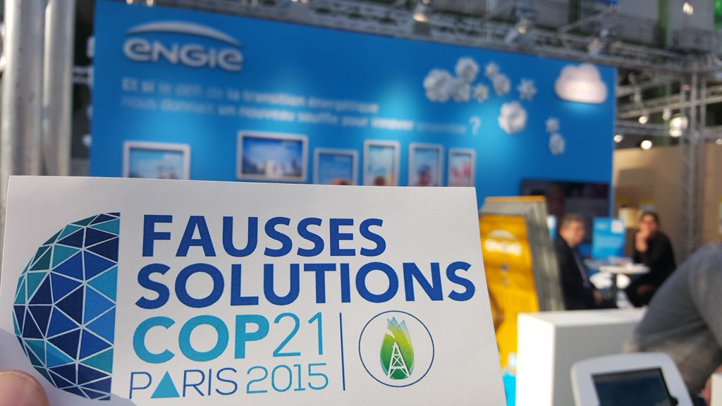 While COP21 negotiations continue on the issue of funding for adaptation in developing countries, fossil fuel companies who receive billions in public subsidies and divert money from energy transition projects towards their tax havens, are parading false solutions to climate change at the Grand Palais expo centre in Paris.