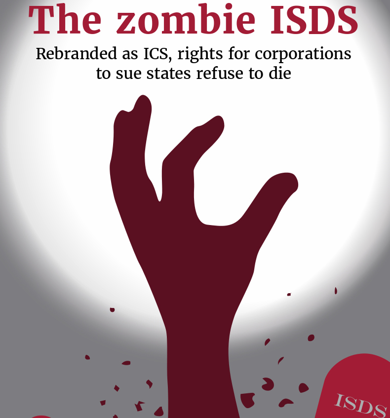 “The zombie ISDS – rebranded as ICS, rights for corporations to sue states refuse to die” shows how the push for foreign investor privileges in EU trade talks such as the proposed EU-US TTIP2 deal continues as the Commission attempts to rebrand the politically untenable investor-state dispute settlement (ISDS) as an “Investment Court System” (ICS). An unprecedented Europe-wide controversy over the democratic threat posed by ISDS led to last autumn’s rebranding of ISDS as ICS in an attempt to get around the enormous public opposition to legal privileges for multinational corporations.