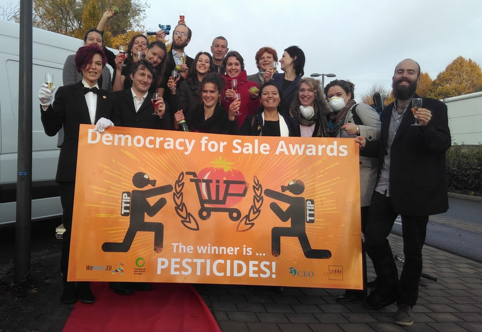With 15,027 votes, the pesticides lobby - namely the European Crop Protection Association and CropLife America* - came in first place, due to the highly privileged access to EU decision-makers and TTIP negotiators they have enjoyed. Tuesday, 1 November, one of our co-organisers on behalf of all organisations notified ECPA of its win, after they had previously been made aware of their nomination on 1 September.