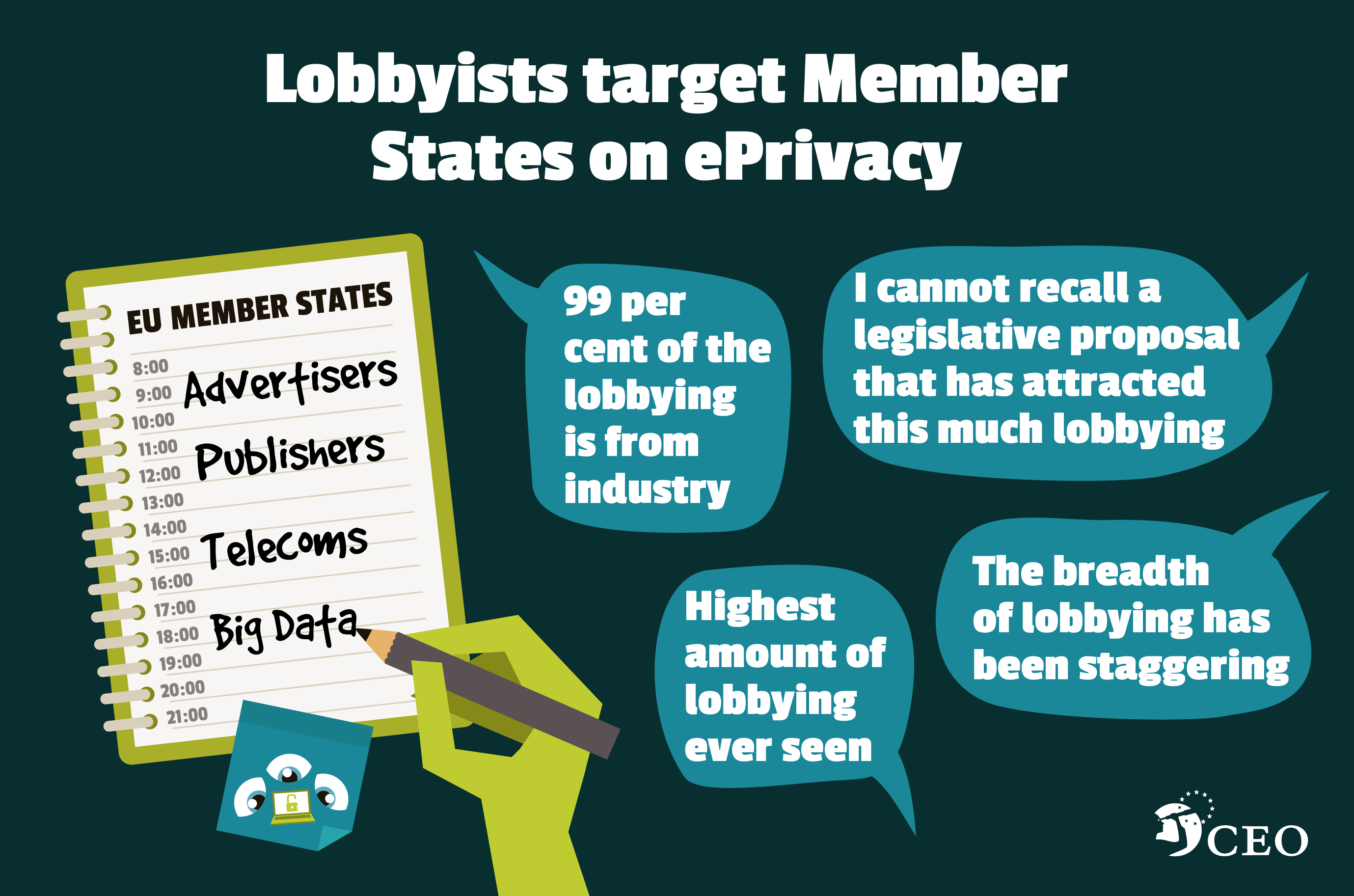 "While citizens clamour for greater online privacy, industry lobbyists have launched major campaigns in Brussels and EU capitals to prevent member state governments from backing tough ePrivacy rules.