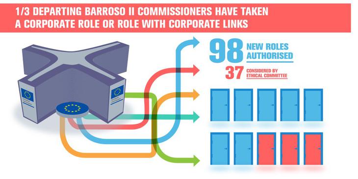 We most recently articulated this view in our October 2015 report which reviewed the 100 or so new roles that former members of the Barroso II Commission had taken since leaving office in October 2014. Our report found that one in three (9 out of 26) outgoing commissioners had gone through the 'revolving door' into roles in corporations or other organisations with links to big business and our concern was the unhealthily close relationship between the EU's executive body and private interests.