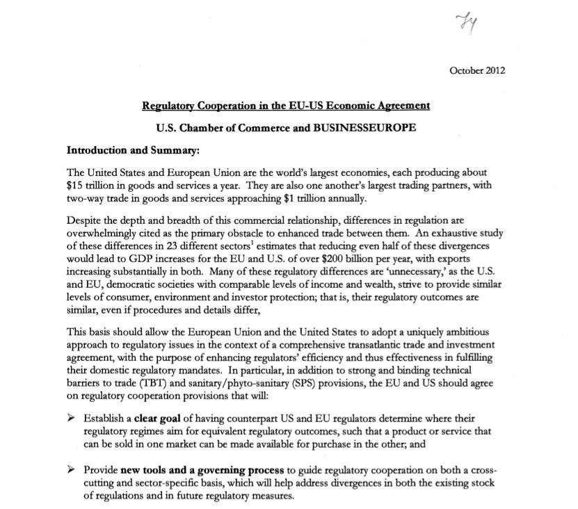 -BusinessEurope & Chamber of Commerce proposal on regulatory cooperation