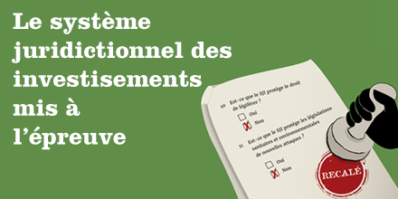 Le rapport – écrit par les Amis de la Terre Europe, Transnational Institute, Corporate Europe Observatory, le Forum pour l'Environnement et le Développement, et le Centre Canadien des Politiques Alternatives - teste la promesse de la Commission Européenne que le Système juridictionnel des investissements, le nouveau cadre pour la protection de l'investissement, protégera le droit des gouvernements à réglementer.
